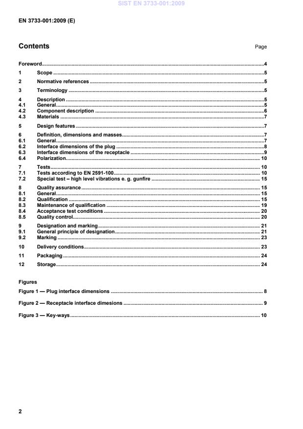 Figure 3 — Key-ways Table 1 – Key positions Dimensions in gradeKey position A B C D Normal 105 140 215 265 A 102 132 248 320 B 80 118 230 312 C 35 140 205 275 D 64 155 234 304 E 91 131 197 240 7 Tests 7.1 Tests according to EN 2591-100 The tests cited in EN 2591-100 are applicable in the context of this standard as well as details necessary for implementing them for inspecting connector characteristics, are given in Table 2. Performance and test method parameters which are fibre and cable dependant, together with environmental testing not applicable to all product standards, are detailed in the appropriate product standards. Tests relating to electrical and multi-way connectors are not applicable to EN 3733 components and are therefore not included in Table 2. SIST EN 3733-001:2009