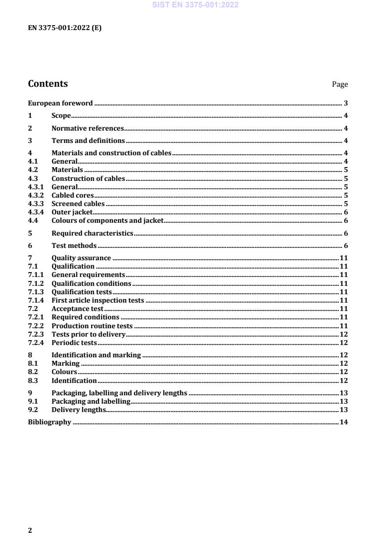 Keywords: EN 3375-001, aerospace cable, electrical cables for digital data transmission, cable test methods, qualification and acceptance, screened cables, signal data transmission cables.