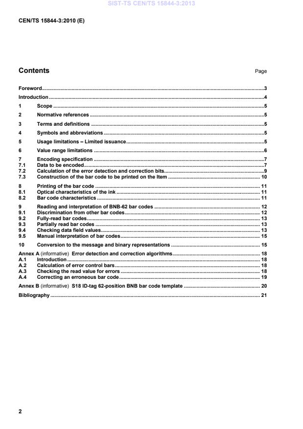 - Encoding format: 62-position bar-no-bar representation of ID-tag fields (BNB-62) derived from the ID-tag data model defined in Part 1 (CEN/TS 15844-1).