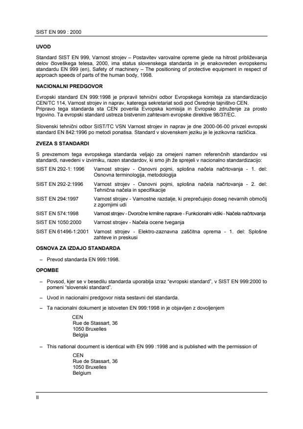 Slovenski tehnični odbor SIST/TC VSN Varnost strojev in naprav je dne 2000-06-00 privzel evropski