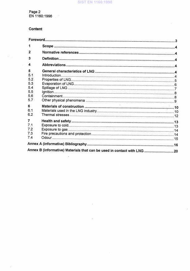 EN 1160:1996 is a standard published by the European Committee for Standardization (CEN). Its full title is "Installations and equipment for liquefied natural gas - General characteristics of liquefied natural gas". This standard covers: This European Standard gives guidance on the characteristics of liquefied natural gas (LNG) and the cryogenic materials used in the LNG industry. It also gives guidance on health and safety matters. It is intended to act as a reference document for the implementation of other standards of CEN/TC 282 "Installations and equipment for liquefied natural gas". It is intended as a reference for use by persons who design or operate LNG facilities.