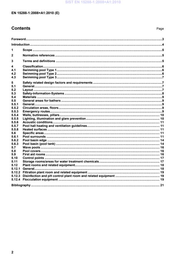 March 2011. Attention is drawn to the possibility that some of the elements of this document may be the subject of patent rights. CEN [and/or CENELEC] shall not be held responsible for identifying any or all such patent rights. This document includes Amendment 1, approved by CEN on 2010-08-09. This document supersedes EN 15288-1:2008. The start and finish of text introduced or altered by amendment is indicated in the text by tags !". This standard EN 15288 "Swimming pools" consists of the following parts: Part 1: Safety requirements for design Part 2: Safety requirements for operation According to the CEN/CENELEC Internal Regulations, the national standards organizations of the following countries are bound to implement this European Standard: Austria, Belgium, Bulgaria, Croatia, Cyprus, Czech Republic, Denmark, Estonia, Finland, France, Germany, Greece, Hungary, Iceland, Ireland, Italy, Latvia, Lithuania, Luxembourg, Malta, Netherlands, Norway, Poland, Portugal, Romania, Slovakia, Slovenia, Spain, Sweden, Switzerland and United Kingdom. SIST EN 15288-1:2008+A1:2010