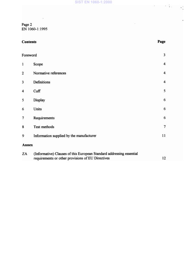 EN 1060-1:1995 is a standard published by the European Committee for Standardization (CEN). Its full title is "Non-invasive sphygmomanometers - Part 1: General requirements". This standard covers: This part of this European Standard specifies general requirements for non- invasive sphygmomanometers and their accessories which, by means of an inflatable cuff, are used for the non-invasive measurement of arterial blood pressure. It specifies performance, efficiency, mechanical and electrical safety requirements for these devices and gives test methods. Note: This standard recommends that Luer lock connectors should not be used with these devices.