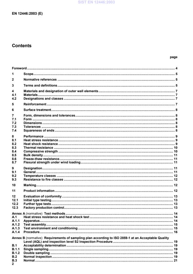 Requirements of sampling plan according to ISO 2859-1 at an Acceptable QualityLevel (AQL) and inspection level S2 Inspection Procedure.19B.1Acceptability determination.19B.1.1Single sampling.19B.1.2Double sampling.19B.2Normal inspection.19B.3Normal.21SIST EN 12446:2003
