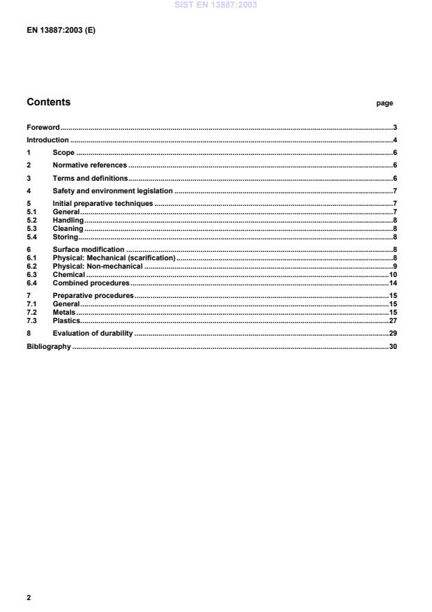 Material surfacesthat are particularly prone to weak or loose surface-layers, stress cracking or solvent attack usually require specialtreatment.Following appropriate preparation, most engineering metals, or their alloys, can be bonded satisfactorily. However,the optimisation of the durability of a metal-based joint usually requires the introduction of progressively more complexand specific treatments.The majority of both thermoset and thermoplastics materials can be prepared by commonly applicable techniques.Were it not for contamination and residual mould release agents, the thermoset plastics (e.g. polyepoxy andpolyester composites) would bond well without any preparation at all. By contrast, most thermoplastics requirecareful preparation because of their low surface energy. However, while the techniques required are generallyapplicable there will often be differences in the process detail.Some paints - especially the cataphoretic, water-based primers used by the vehicle industries, can provide anexcellent surface for bonding. Nevertheless, a check of the stability of the interface below the paint isrecommended. Sometimes the surface of the paint, even if fresh, can require treatment in order to raise its freeenergy and thus facilitate wetting.Certain adhesives possess the ability to dissolve light oils and some polymeric materials. Consequently, for joints thatare not "safety-critical" some surfaces do not require any preparation at all prior to bonding.The various methods provided for cleaning and modifying surfaces are drawn from current and developing practice.The techniques described can be used in a variety of combinations to create the basis of a practical, preparativeprocess that will provide enhanced environmental durability.SIST EN 13887:2003