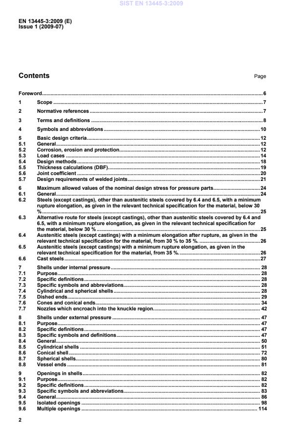 Issue 1 (2009-07) 3 9.7 Openings close to a shell discontinuity.124 10 Flat ends.132 10.1 Purpose.132 10.2 Specific definitions.132 10.3 Specific symbols and abbreviations.132 10.4 Unpierced circular flat ends welded to cylindrical shells.134 10.5 Unpierced bolted circular flat ends.141 10.6 Pierced circular flat ends.145 10.7 Flat ends of non-circular or annular shape.149 11 Flanges.153 11.1 Purpose.153 11.2 Specific definitions.153 11.3 Specific symbols and abbreviations.153 11.4 General.156 11.5 Narrow face gasketed flanges.160 11.6 Full face flanges with soft ring type gaskets.175 11.7 Seal welded flanges.178 11.8 Reverse narrow face flanges.178 11.9 Reverse full face flanges.181 11.10 Full face flanges with metal to metal contact.185 12 Bolted domed ends.188 12.1 Purpose.188 12.2 Specific definitions.188 12.3 Specific symbols and abbreviations.188 12.4 General.188 12.5 Bolted domed ends with narrow face gaskets.188 12.6 Bolted domed ends with full face joints.190 13 Heat Exchanger Tubesheets.192 13.1 Purpose.192 13.2 Specific definitions.192 13.3 Specific symbols and abbreviations.192 13.4 U-tube tubesheet heat exchangers.195 13.5 Fixed tubesheet heat exchangers.209 13.6 Floating tubesheet heat exchangers.237 13.7 Tubesheet characteristics.254 13.8 Maximum permissible tube to tubesheet joint stress.261 13.9 Maximum permissible longitudinal compressive stress for tubes.262 13.10 Design of tubesheet flange extension with a narrow face gasket.265 13.11 Design of tubesheet flange extension with a full face gasket.268 13.12 Special tube-to-tubesheet welded joints.271 14 Expansion bellows.274 14.1 Purpose.274 14.2 Specific definitions.274 14.3 Specific symbols and abbreviations.276 14.4 Conditions of applicability.278 14.5 U-shaped unreinforced bellows.280 14.6 U-shaped reinforced bellows.294 14.7 Toroidal bellows.302 14.8 Fabrication.309 14.9 Inspection and testing.311 14.10 Bellows subjected to axial, lateral or angular displacements.313 15 Pressure vessels of rectangular section.318 15.1 Purpose.318 15.2 Specific definitions.318 15.3 Specific symbols and abbreviations.318 15.4 General.319 15.5 Unreinforced vessels.319 15.6 Reinforced vessels.325 15.7 Openings.332 SIST EN 13445-3:2009