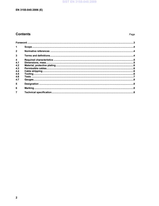 This standard specifies the required characteristics, tests and tooling applicable to female electrical contacts 045, type A, double crimping, class T, used in elements of connection according to EN 3155-002. It shall be used together with EN 3155-001. The associated male contact is defined in EN 3155-044.