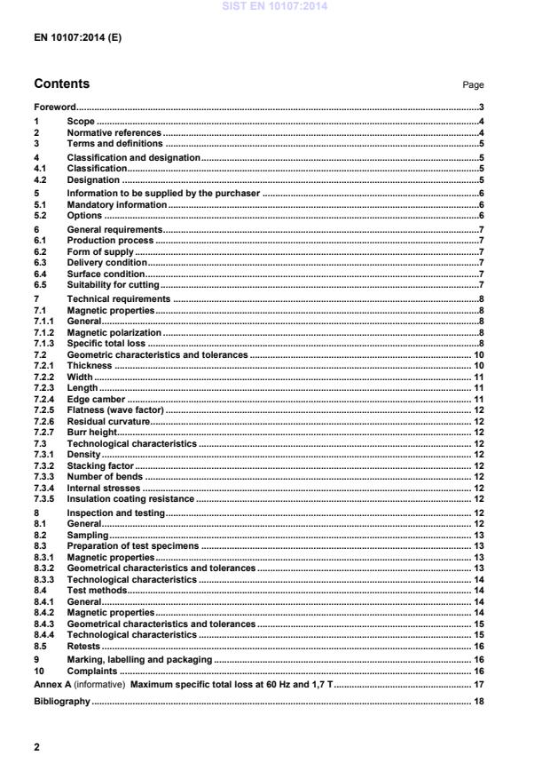 Maximum specific total loss at 60 Hz and 1,7 T . 17 Bibliography . 18 SIST EN 10107:2014