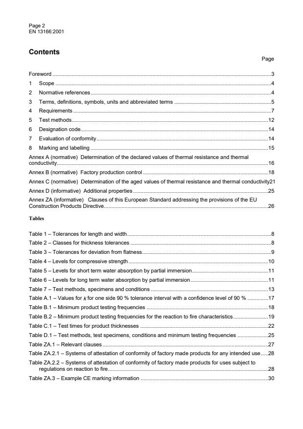 Page 2EN 13166:2001ContentsPageForeword.31Scope.42Normative references.43Terms, definitions, symbols, units and abbreviated terms.54Requirements.75Test methods.126Designation code.147Evaluation of conformity.148Marking and labelling.15Annex A (normative)