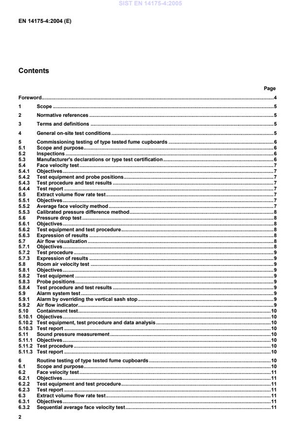 EN 14175-4:2004 - "Fume cupboards - Part 4: On-site test methods" (CEN) defines a selection of practical, in-place test methods for laboratory fume cupboards (fume hoods). The standard covers on-site commissioning, maintenance, routine testing and qualification of: