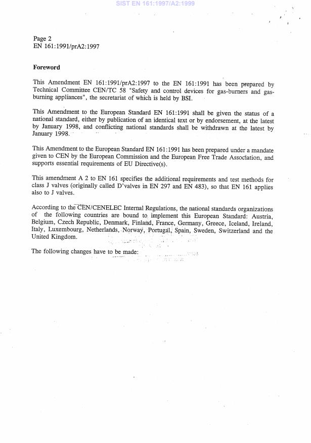 EN 161:1991/A2:1997 is a amendment published by the European Committee for Standardization (CEN). Its full title is "Automatic shut-off valves for gas burners and gas appliances". This standard covers: Automatic shut-off valves for gas burners and gas appliances
