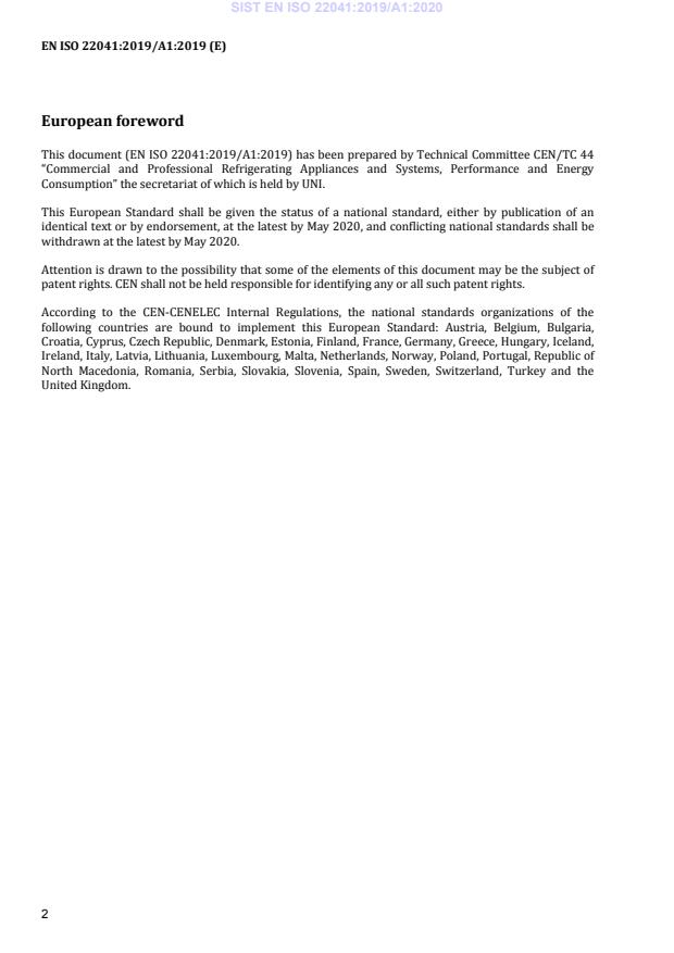 (Amendment)Refrigerated storage cabinets and counters for professional use - Performance and energy consumption (ISO 22041:2019)