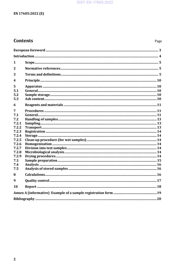- Sample handling procedures: sampling, transport, registration, storage, clean-up for wet samples, homogenization (coarse and fine grinding), subsampling/splitting, microbiological handling and drying procedures (including partial drying).