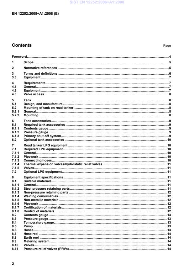 It also specifies the requirements for the assembly of the accessories and the vehicle LPG equipment to the road tanker. This European Standard also identifies additional equipment and accessories that may be used on road tankers carrying LPG. NOTE This European Standard does not preclude the use of alternative designs, materials and equipment testing which provide a similar level of safety. This European Standard does not apply to "tank-containers" and "battery-vehicles" used for the transportation of LPG. 2 Normative references The following referenced documents are indispensable for the application of this European Standard. For dated references, only the edition cited applies. For undated references, the latest edition of the referenced document (including any amendments) applies. EN 287-1, Qualification test of welders — Fusion welding — Part 1: Steels EN 549, Rubber materials for seals and diaphragms for gas appliances and gas equipment EN 558-1, Industrial valves — Face-to-face and centre-to-face dimensions of metal valves for use in flanged pipe systems — Part 1: PN-designated valves !deleted text" EN 837-2, Pressure gauges — Part 2: Selection and installation recommendations for pressure gauges EN 1012-1, Compressors and vacuum pumps — Safety requirements — Part 1: Compressors EN 1418, Welding personnel — Approval testing of welding operators for fusion welding and resistance weld setters for fully mechanized and automatic welding of metallic materials EN 1591-1, Flanges and their joints — Design rules for gasketed circular flange connections — Part 1: Calculation method EN 1762, Rubber hoses and hose assemblies for liquefied petroleum gas, LPG (liquid or gaseous phase) and natural gas up to 25 bar (2,5 MPa) — Specification !EN 1983", Industrial valves — Steel ball valves EN 1984, Industrial valves — Steel gate valves EN 10025 (all parts), Hot rolled products of structural steels EN 10028 (all parts), Flat products made of steels for pressure purposes EN 10045-1, Metallic materials — Charpy impact test — Part 1: Test method EN 10204:2004, Metallic products — Types of inspection documents SIST EN 12252:2006+A1:2008