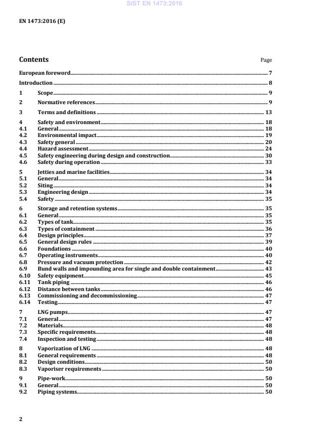 Specific requirements for LNG pumps . 97 D.1 Introduction . 97 D.2 Design . 97 D.3 Inspection . 97 D.4 Testing . 98 D.5 Declared values . 100 D.6 Marking . 100 D.7 Particular requirements for submerged pumps and related cables . 101 D.8 Vertical external motor pumps . 102 SIST EN 1473:2016