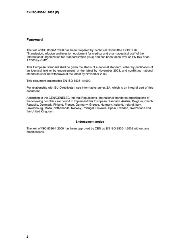 The text of ISO 8536-1:2000 has been approved by CEN as EN ISO 8536-1:2003 without any