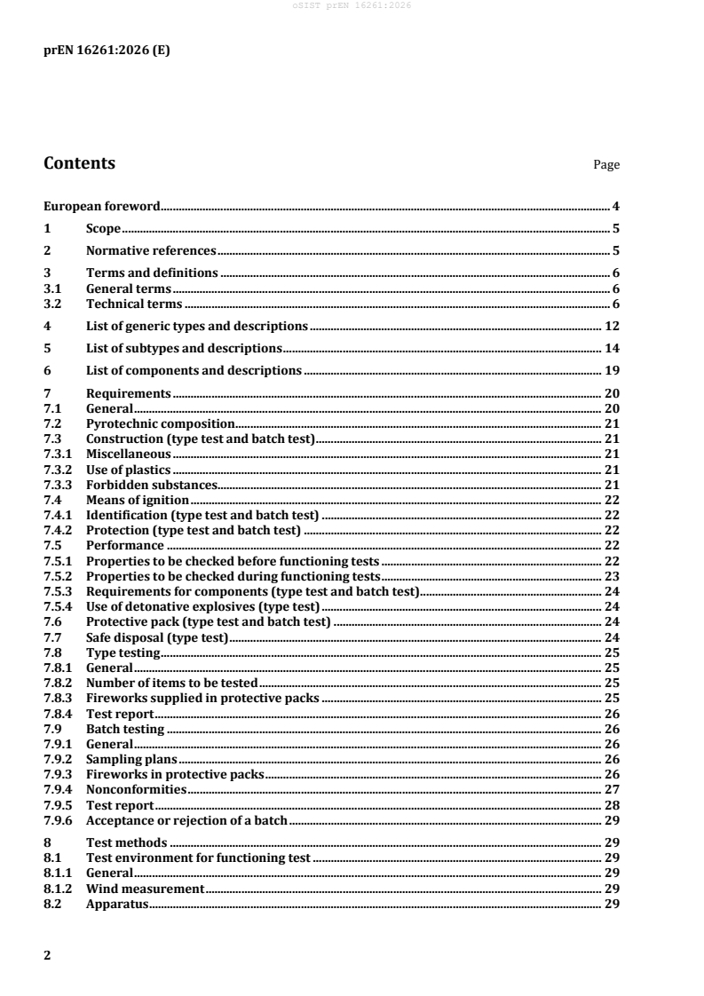 prEN 16261:2026 is aligned with the essential safety requirements of Directive 2013/29/EU, ensuring harmonized compliance with EU legislation on pyrotechnic articles.