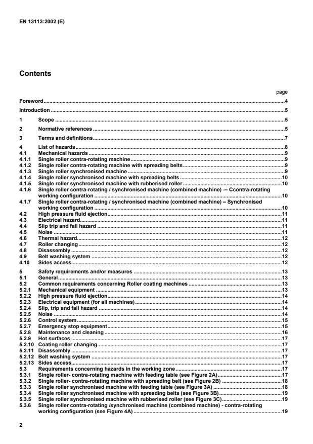 This European Standard deals with the following roller coating machines (see figures 2 to 4 and normative Annex A for description) a) single and multi-roller contra-rotating machines (see figure 2) b) single and multi-roller synchronised machines (see figure 3) c) single and multi roller- contra-rotating /synchronised machines, so-called combined machines (see figure 4) The machines are not intended to be used during transportation. This standard specifies safety requirements for design, construction and operation. It takes account of intended use, foreseeable misuse, component and systems failure. This standard takes account of material feeding and handling devices which, when attached to the machine, become an integral part. This European standard applies to the machines manufactured after its date of issue. This standard does not establish any requirements for electromagnetic disturbances. NOTE Directive 94/9/EC concerning equipment and protective systems intended for use in potentially explosive atmospheres can be applicable to the type of machine or equipment covered by this European Standard. The present standard does not necessarily comply with Directive 94/9/EC. Additional safety requirements in a future revision of this standard may be necessary to satisfy Directive 94/9/EC.