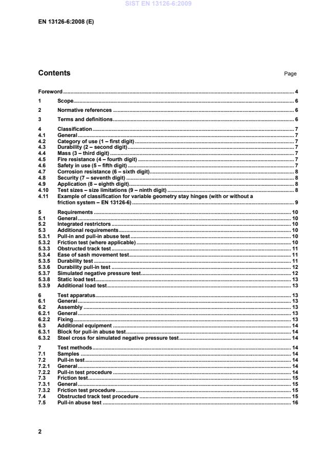 EN 13126-6:2008 is a standard published by the European Committee for Standardization (CEN). Its full title is "Building hardware - Requirements and test methods for windows and doors height windows - Part 6: Variable geometry stay hinges (with or without a friction stay)". This standard covers: This part of EN 13126 specifies requirements and test methods for durability, strength, security and function of mechanically operated variable geometry stay hinges (with or without a friction system). By means of this European Standard, the user of recognized tested hardware can assume that with correct usage, the variable geometry stay hinges (with or without a friction system) for windows conform to prescribed requirements. NOTE 1 This European Standard is applicable to variable geometry stay hinges (with or without a friction system) whether fitted with integral restrictors or not. NOTE 2 Balancing stay arms/hinges do not represent a friction system. NOTE 3 For the purposes of this European Standard, the friction system is achieved by friction pads or similar.
