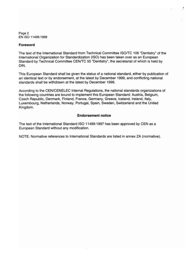 International Standard IS0 11499 was prepared by Technical Committee ISO/TC 106, Dentistry, Subcommittee