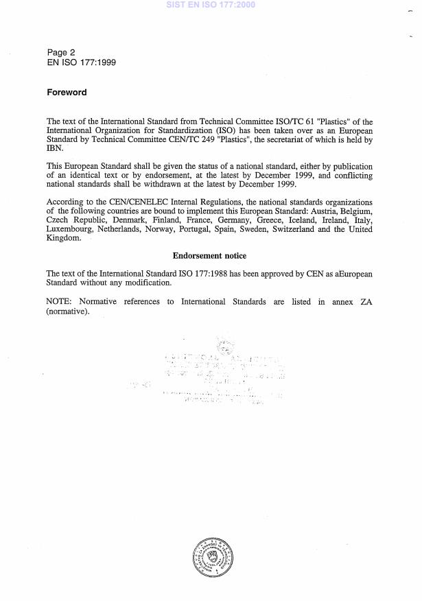 Ta slovenski standard je istoveten z: EN ISO 177:1999