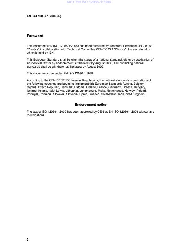 This document (EN ISO 12086-1:2006) has been prepared by Technical Committee ISO/TC 61