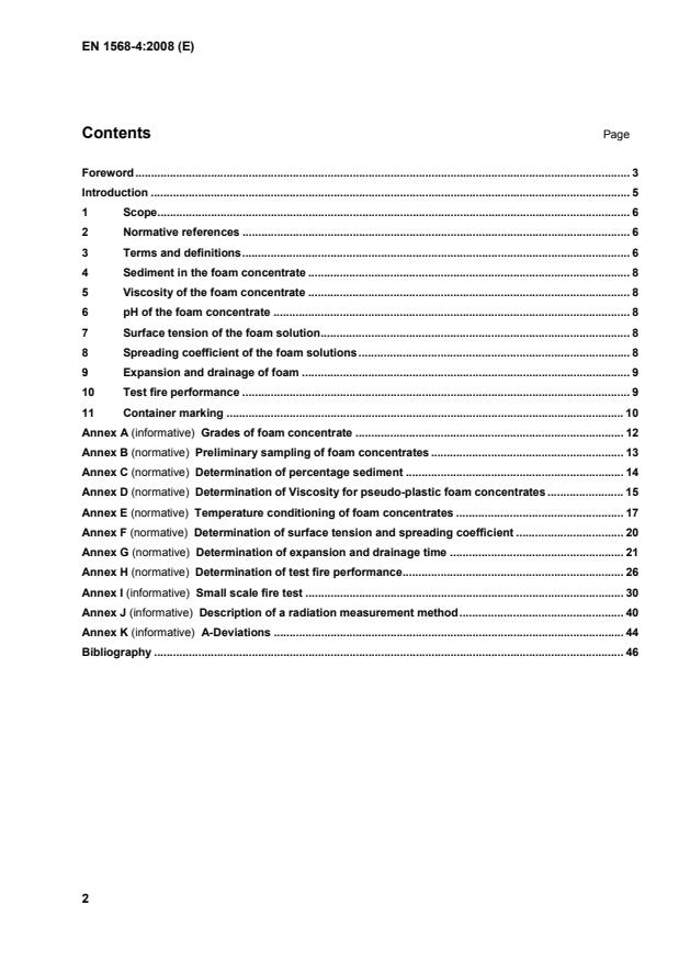 It is also essential for the user to note, that other fuel depths and methods of application than those specified in I.2, can cause considerable loss of efficiency and these matters should be carefully considered by the user when assessing the suitability for particular applications. NOTE Some concentrates conforming to this part of EN 1568 can also conforms to other parts and therefore can also be suitable for application as medium and/or high expansion foams. 2 Normative references The following referenced documents are indispensable for the application of this document. For dated references, only the edition cited applies. For undated references, the latest edition of the referenced document (including any amendments) applies. EN ISO 3104, Petroleum products — Transparent and opaque liquids — Determination of kinematic viscosity and calculation of dynamic viscosity (ISO 3104:1994) EN ISO 3219, Plastics - Polymers/resins in the liquid state or as emulsions or dispersions - Determination of viscosity using a rotational viscometer with defined shear rate (ISO 3219:1993) EN ISO 3696, Water for analytical laboratory use - Specification and test methods (ISO 3696:1987) ISO 304, Surface active agents — Determination of surface tension by drawing up liquid films ISO 3310-1, Test sieves — Technical requirements and testing — Part 1: Test sieves of metal wire cloth 3 Terms and definitions For the purposes of this document, the following terms and definitions apply. 3.1 25 %/50 % drainage time time taken for 25 %/50 % of the volume of the original foam solution to drain out of the generated foam