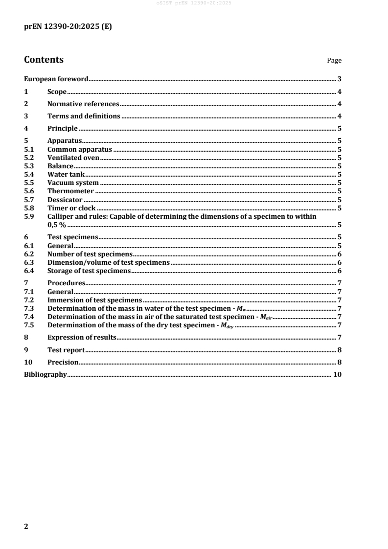 Keywords: prEN 12390-20, hardened concrete testing, porosity determination, concrete open pores, concrete quality control, vacuum saturation method, concrete porosity standard, concrete specimens testing, CEN concrete standards, concrete durability assessment