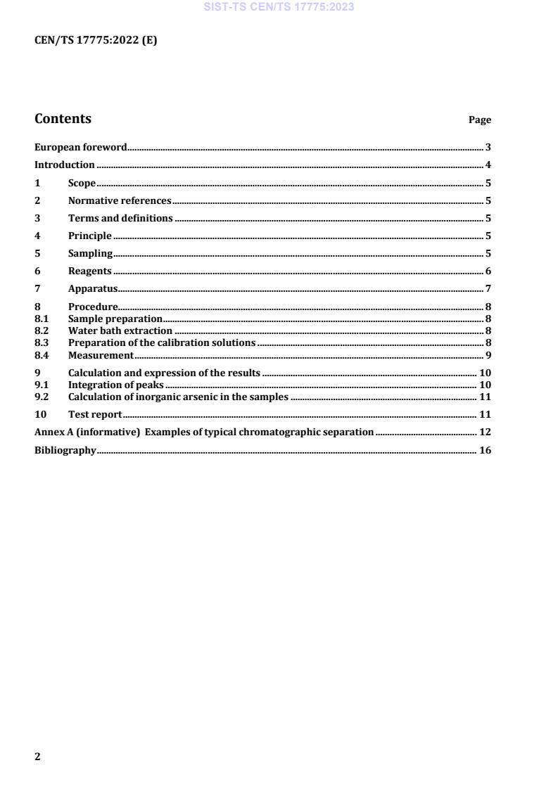 This document specifies a method for extraction, separation, and determination of inorganic arsenic