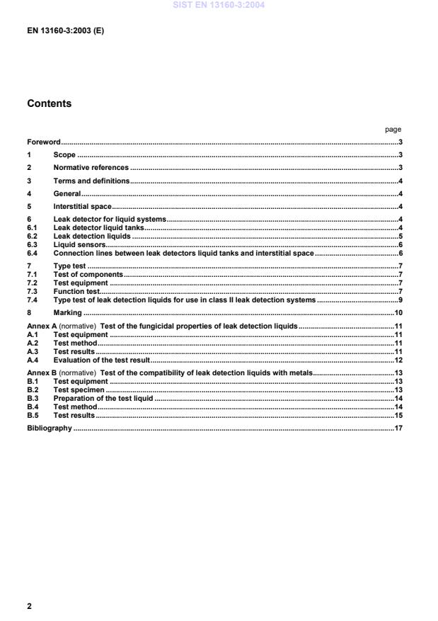 Test of the compatibility of leak detection liquids with metals.13B.1Test equipment.13B.2Test specimen.13B.3Preparation of the test liquid.14B.4Test method.14B.5Test results.15Bibliography.17SIST EN 13160-3:2004
