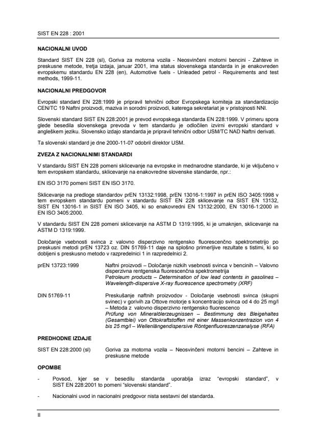 Slovenski standard SIST EN 228:2001 je prevod evropskega standarda EN 228:1999. V primeru spora