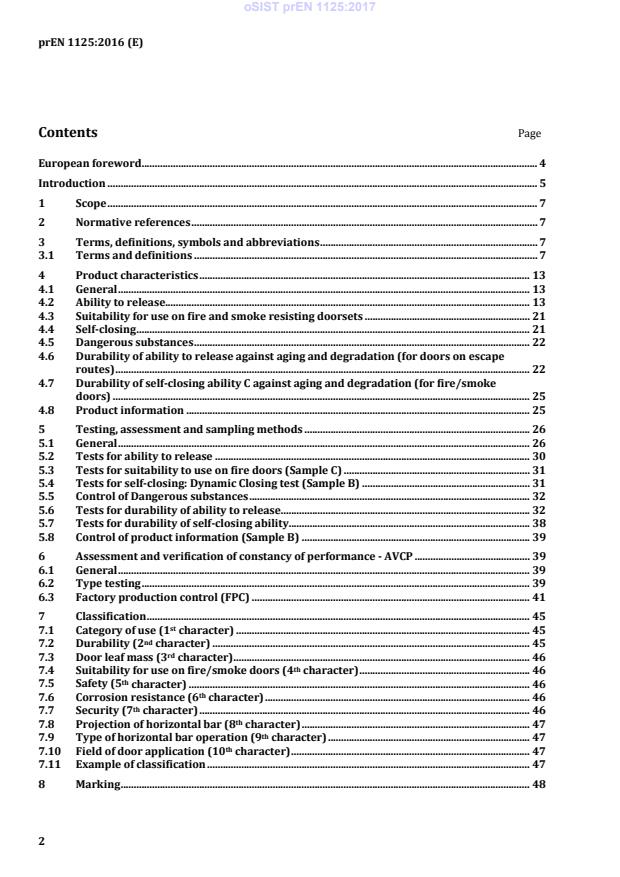 prEN 1125 is a European Standard developed by CEN that specifies the requirements, performance criteria, and testing methods for panic exit devices operated by a horizontal bar. These devices are designed for use on escape routes to ensure safe and efficient exit during panic situations. The standard applies to panic exit devices that are either manufactured as complete units or assembled from sub-assemblies marketed as kits. The primary purpose is to enable safe exit with minimal effort and no prior knowledge of the device, facilitating quick evacuation of people in emergencies such as fires or smoke hazards.