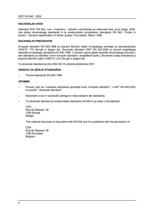 CEN/TC 175 Okrogli in žagani les. Slovenski standard SIST EN 942:2002 je prevod angleškega