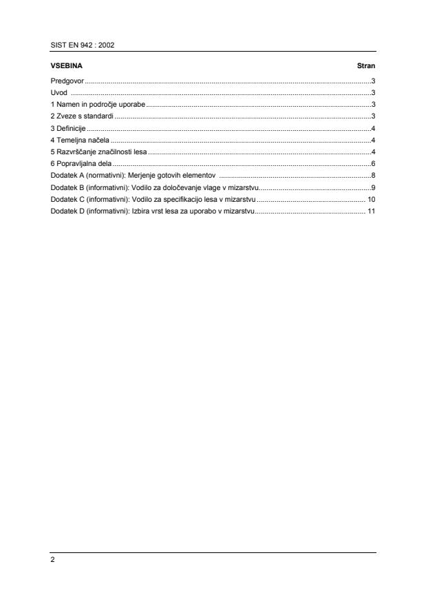 ima status slovenskega standarda in je enakovreden evropskemu standardu EN 942, Timber in