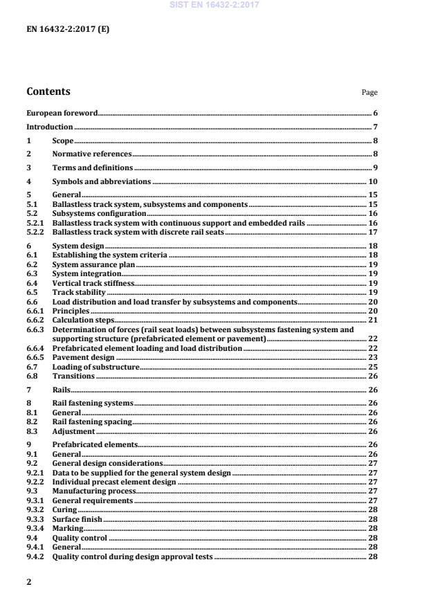 EN 16432-2:2017 is a standard published by the European Committee for Standardization (CEN). Its full title is "Railway applications - Ballastless track systems - Part 2: System design, subsystems and components". This standard covers: This part of FprEN 16432 specifies system and subsystem design and component configuration for ballastless track system. The system and subsystem design requirements are assigned from the general requirements of FprEN 16432-1:2016. Where applicable, existing subsystem or component requirements from other standards are to be referenced.