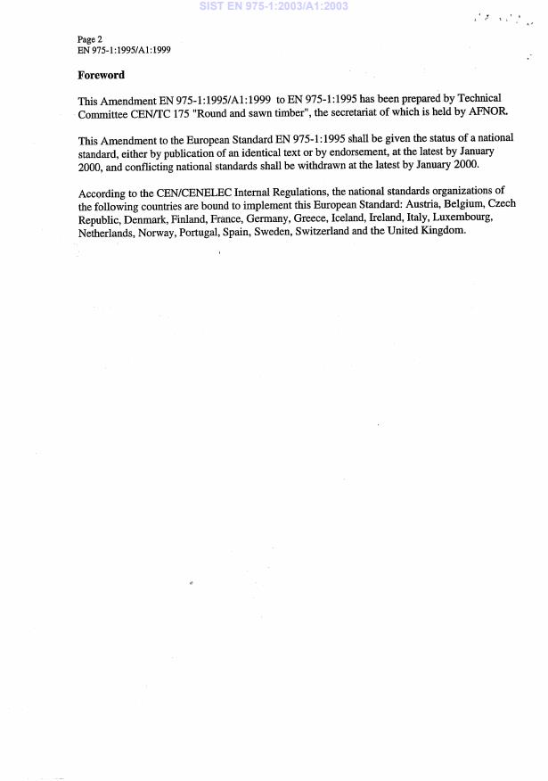 EN 975-1:1995/A1:1999 is a amendment published by the European Committee for Standardization (CEN). Its full title is "Sawn timber - Appearance grading of hardwoods - Part 1: Oak and beech". This standard covers: This standard specifies the rules determining the quality of appearance graded sawn timber. It describes various classes of temperate hardwood rough sawn timber and regularized timber for which it lays down denominations and definitions. It also gives rules for composition and acceptance of batches. This standard applies to green and dried timber. This standard is applicable to oak or beech sawn timber. This standard does not apply to the strength grading of structural timber or to timber for pallets.