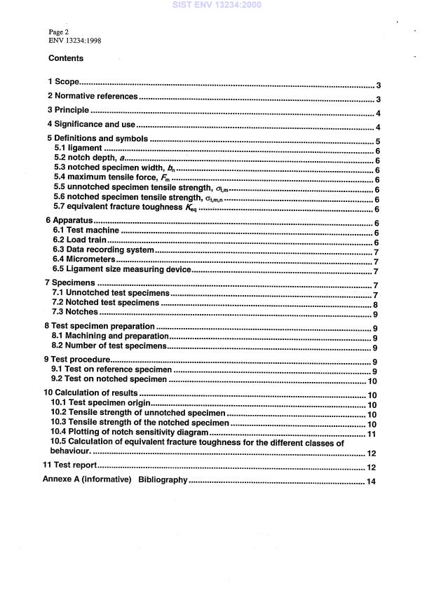 ENV 13234:1998 is a standardization document published by the European Committee for Standardization (CEN). Its full title is "Advanced technical ceramics - Ceramic composites - Mechanical properties at ambient temperature - Evaluation of the resistance to crack propagation by the notch sensitivity testing". This standard covers: This ENV presents a method to classify the ceramic matrix composite (CMC) materials with respect to their sensitivity to crack propagation by using tensile tests on notched specimens having different notch depths. Two classes of ceramic matrix composite materials can be distinguished: the materials for which the strength is insensitive and those for which the strength is affected by the presence of notches. For sensitive materials, this ENV allows the determination of an equivalent fracture toughness.