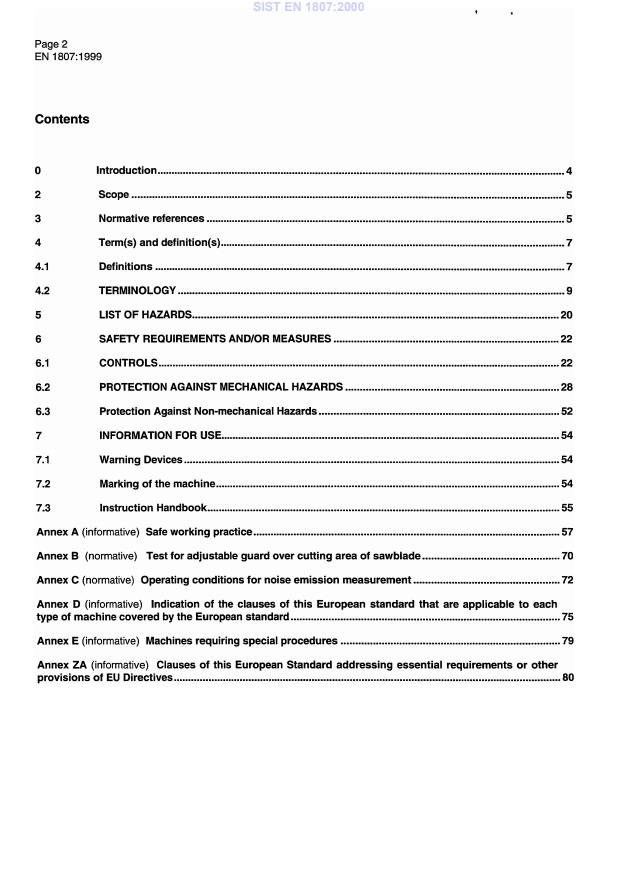 This European Standard specifies the requirements and/or measures to remove the hazards and limit the risk on band sawing machines with either manual or automatic loading and/or unloading, hereinafter referred to as "machines" designed to cut solid wood, chipboard, fibreboard, plywood and also these materials where they are covered with plastic laminate or edgings. Electrically driven machines set up on a bench or a table similar to a bench, which are intended to carry out work in a stationary position, capable of being lifted by one person by hand, excluded by the scope of this European standard, are covered by the requirements of EN 61029-1 : 1995 and prEN 61029-2-5. This European Standard covers all the hazards relevant to these machines as stated in Clause 4. This European Standard does not cover the hazards related to Electromagnetic Compatibility (EMC) as required by the EMC Directive 89/336/EEC of 03-05-89. This European Standard does not apply to: - hand held woodworking machines or any adaptation permitting their use in a different mode, i.e. bench mounting; - machines set up on a bench or a table similar to a bench, which are intended to carry out work in a stationary position, capable of being lifted by one person by hand. This European Standard does not cover the hazards arising from machining processes (e.g. milling and sawing) of related to associated machines e.g. canters and circular saws. This European Standard is primarily directed at machines which are manufactured after the date of issue of this standard.
