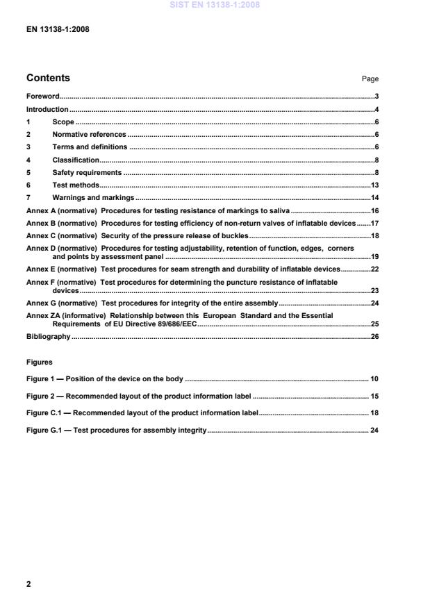 Figures Figure 1 — Position of the device on the body.10 Figure 2 — Recommended layout of the product information label.15 Figure C.1 — Recommended layout of the product information label.18 Figure G.1 — Test procedures for assembly integrity.24 SIST EN 13138-1:2008