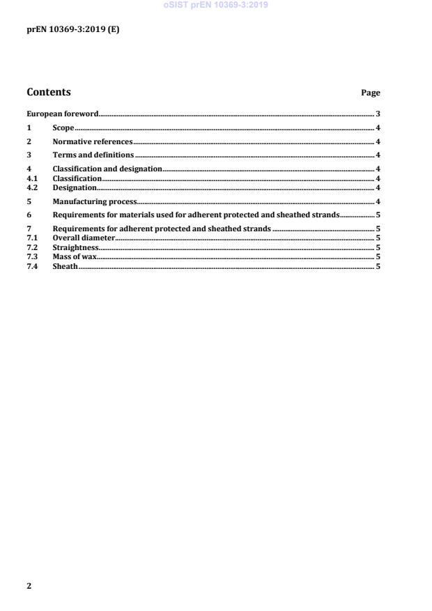 prEN 10369-3 is a draft published by the European Committee for Standardization (CEN). Its full title is "Prestressing steels - Protected and sheathed strands for prestressing - Part 3: Adherent strands". This standard covers: This document specifies the specific requirements for adherent protected and sheathed strands (type A). The general requirements for protected and sheathed high strength steel strands are given in prEN 10369-1.
