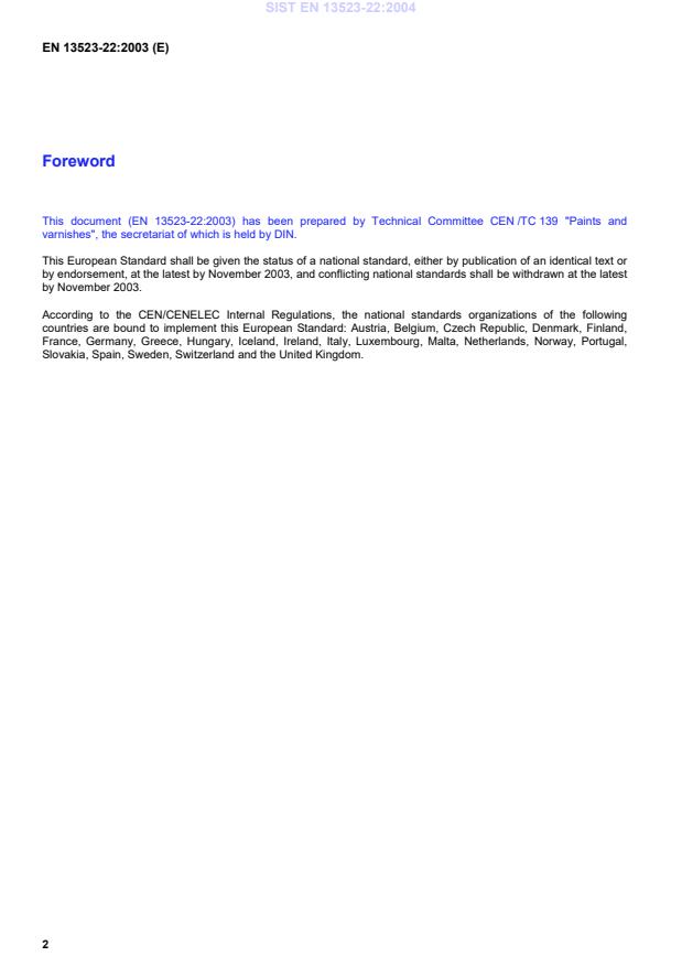 B-1050 Brussels© 2003 CENAll rights of exploitation in any form and by any means reservedworldwide for CEN national Members.Ref. No. EN 13523-22:2003 ESIST EN 13523-22:2004