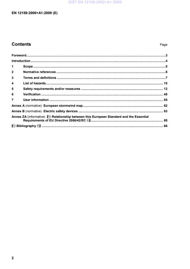 !Relationship between this European Standard and the Essential Requirements of EU Directive 2006/42/EC" . 65!Bibliography" . 66 SIST EN 12159:2002+A1:2009