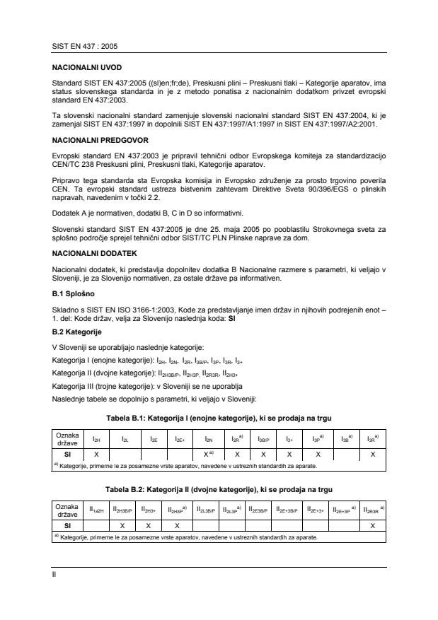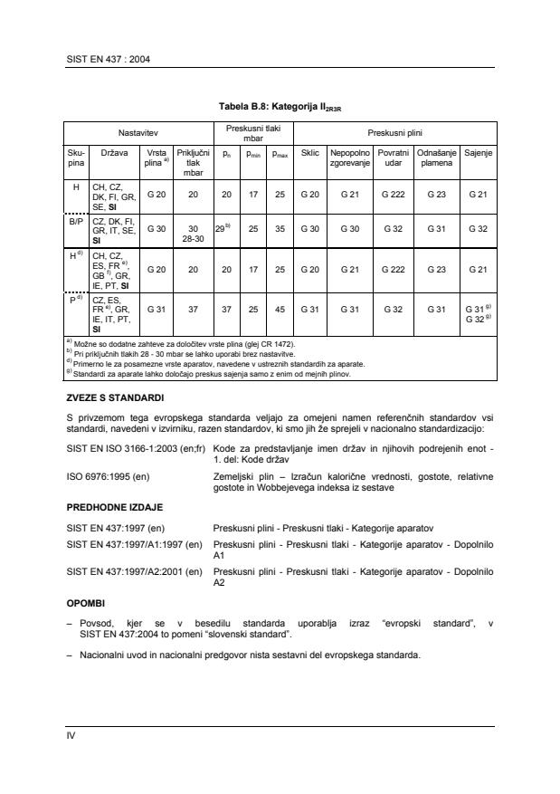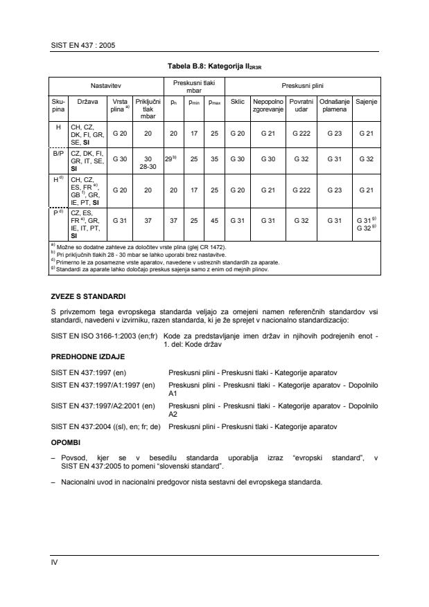 Standard SIST EN 437:2004 ((sl)en;fr;de), Preskusni plini – Preskusni tlaki – Kategorije aparatov, ima