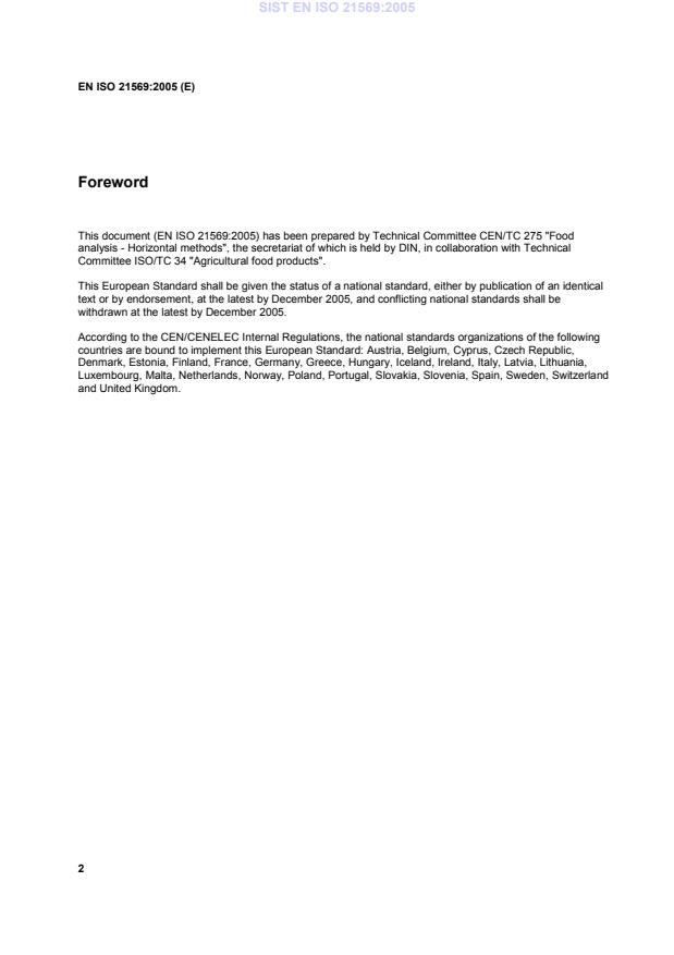 EN ISO 21569:2005 is classified under the following ICS (International Classification for Standards) categories: 67.050 - General methods of tests and analysis for food products. The ICS classification helps identify the subject area and facilitates finding related standards.
