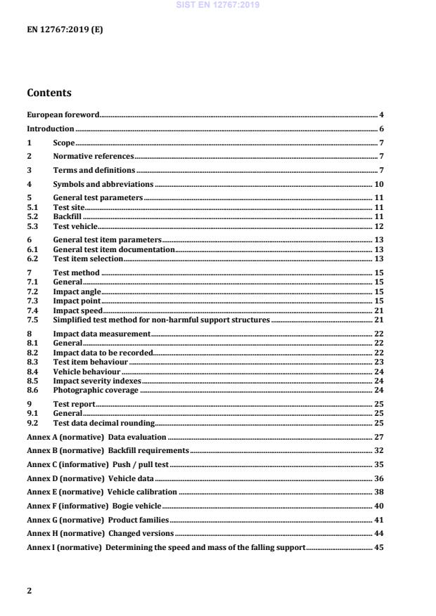 Ta dokument določa postopke preskušanja zmogljivosti za določanje lastnosti pasivne varnosti nosilnih konstrukcij, kot so drogovi za razsvetljavo, znaki, konstrukcijski elementi, temelji, odstranljivi produkti in vse druge komponente, ki se uporabljajo kot nosilna konstrukcija za določen del opreme ob cesti.