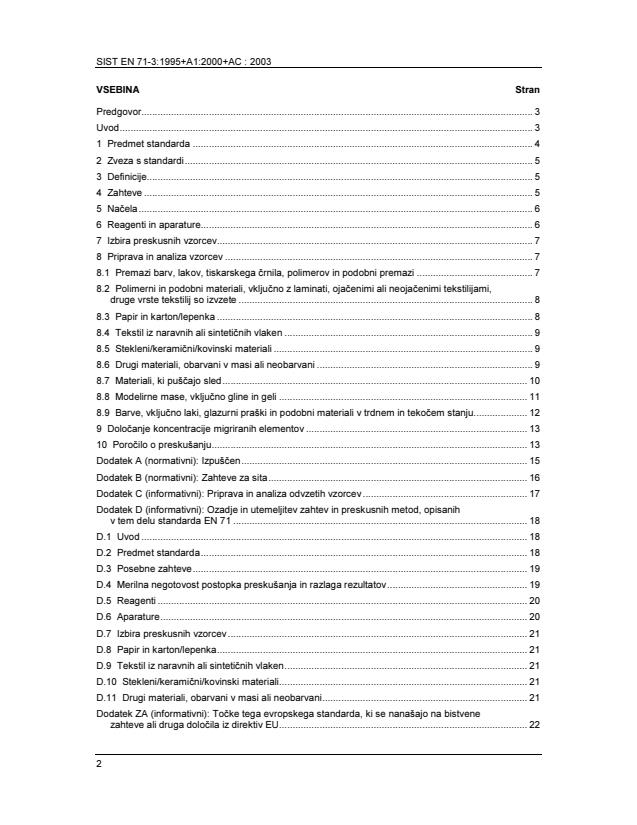 Ta del evropskega standarda opisuje zahteve in preskusne metode za migracijo elementov: antimona, arzena, barija, kadmija, kroma, svinca, živega srebra in selena iz materialov igrač ter iz delov igrač, razen iz delov, ki niso dostopni (glej 1. del tega standarda).