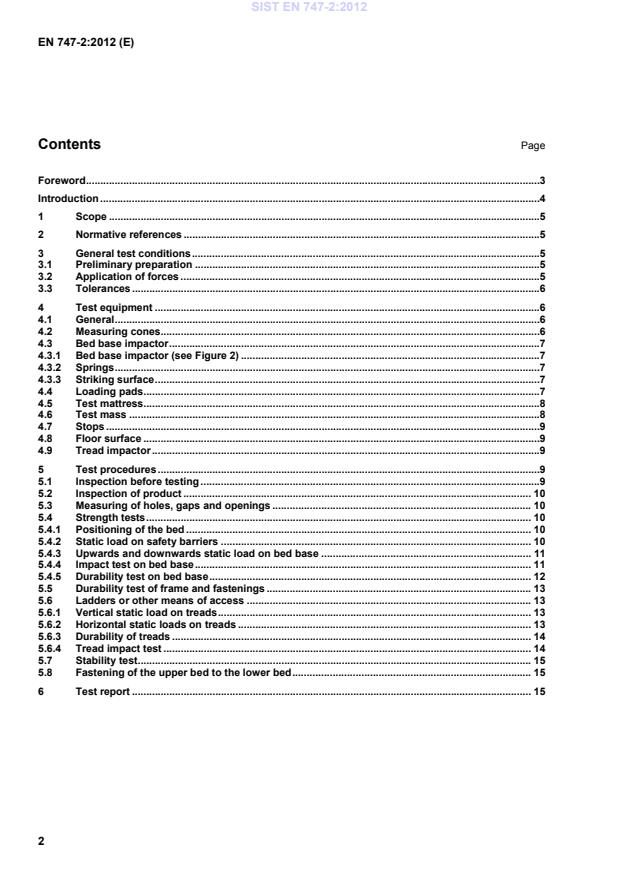 Diese Europäische Norm legt Prüfverfahren zur Sicherheit, Festigkeit und Dauerhaltbarkeit von Etagenbetten und Hochbetten für den Wohn- und Objektbereich fest. Die für die Festigkeits- und Dauerhaltbarkeits-prüfungen festgelegten Belastungen und Kräfte gelten für Betten mit einer inneren Länge von mehr als 140 cm und einer Höchstbreite des Bettbodens von 120 cm. Die Prüfungen sind an einem vollständig zusammengebauten und gebrauchsfertigen Bett durchzuführen. Die entsprechenden Sicherheitsanforderungen sind in EN 747-1 angegeben.