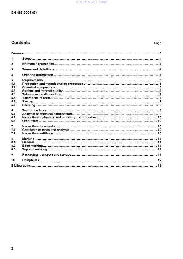 Keywords: EN 487:2009, rolling ingots, aluminium alloys, semi-continuous vertical casting, tolerances, chemical composition, sawing code, scalping, inspection certificate.