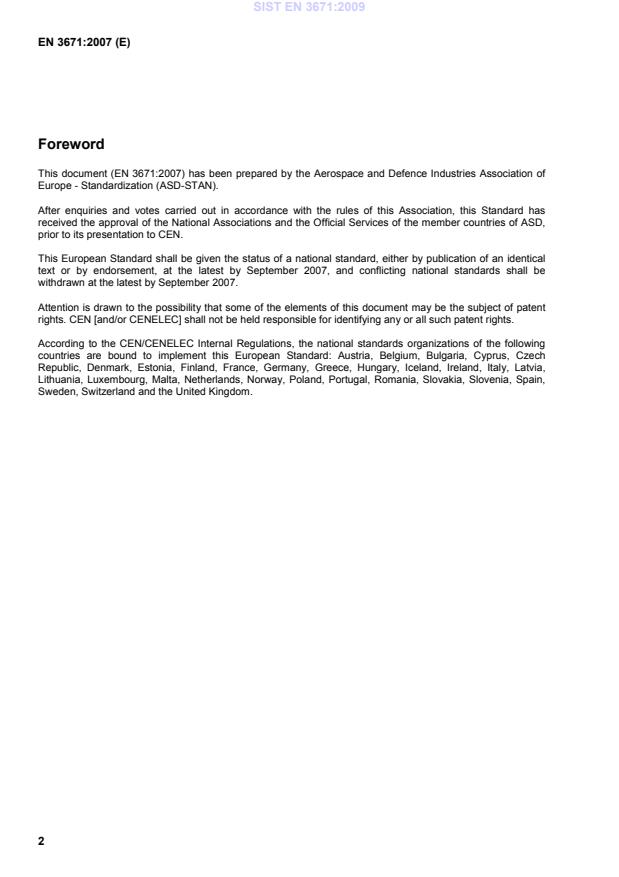 B-1050 Brussels © 2007 CEN All rights of exploitation in any form and by any means reserved worldwide for CEN national Members. Ref. No. EN 3671:2007: ESIST EN 3671:2009