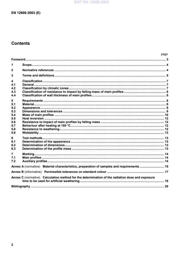 Calculation method for the determination of the radiation dose and exposuretime to be used for artificial weathering.18Bibliography.20SIST EN 12608:2003